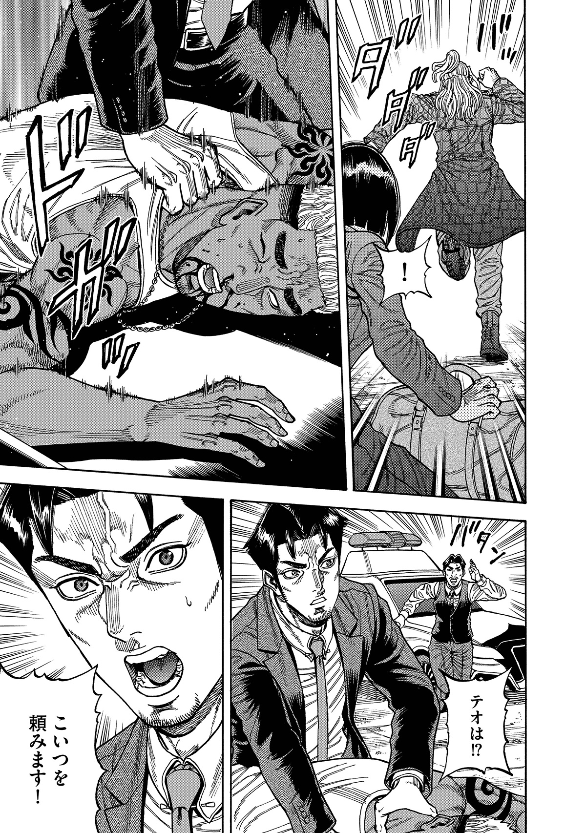 後輩の女刑事・初佳とともに、アジトの廃工場でついにテオを追い詰めた眞島。あとから応援に駆けつけた複数のパトカーを前に、眞島に制圧された弟分・ペドロと高飛び金を見限って単独逃走するテオ。その狂気の足取りはよりによって、眞島の“想い人”の元へ……。