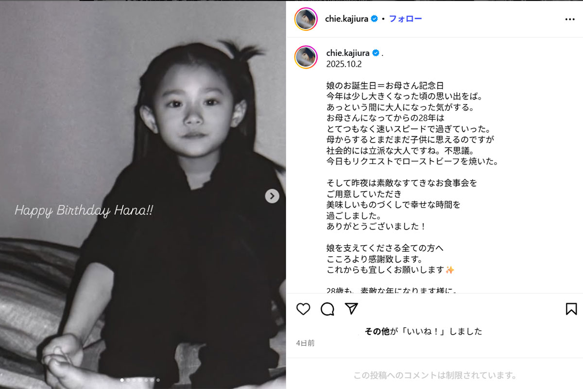 杉咲花、誕生日に母のチエ・カジウラが公開した写真に「子供の頃から約束されてる可愛さ」ファン称賛…俳優業を後押しした母との絆(画像1/2)公開日:2025.10.07 更新日:2025.10.07