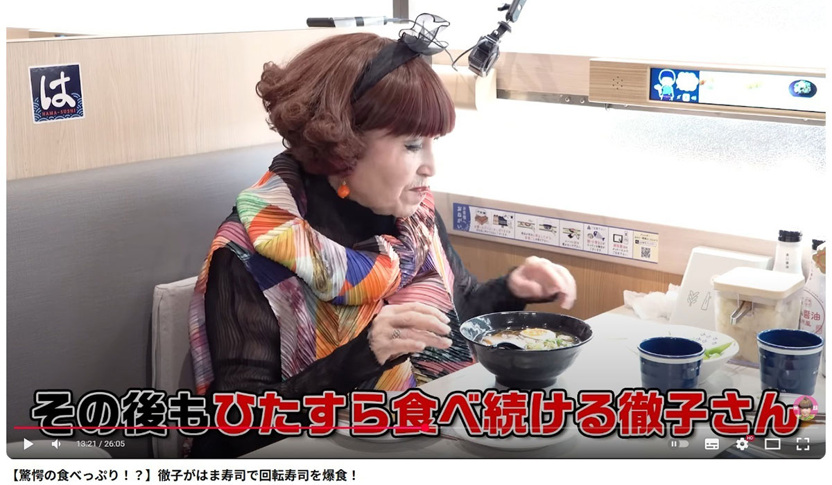 はま寿司でラーメンやデザートを完食する黒柳徹子(写真・本人のYouTubeより)
