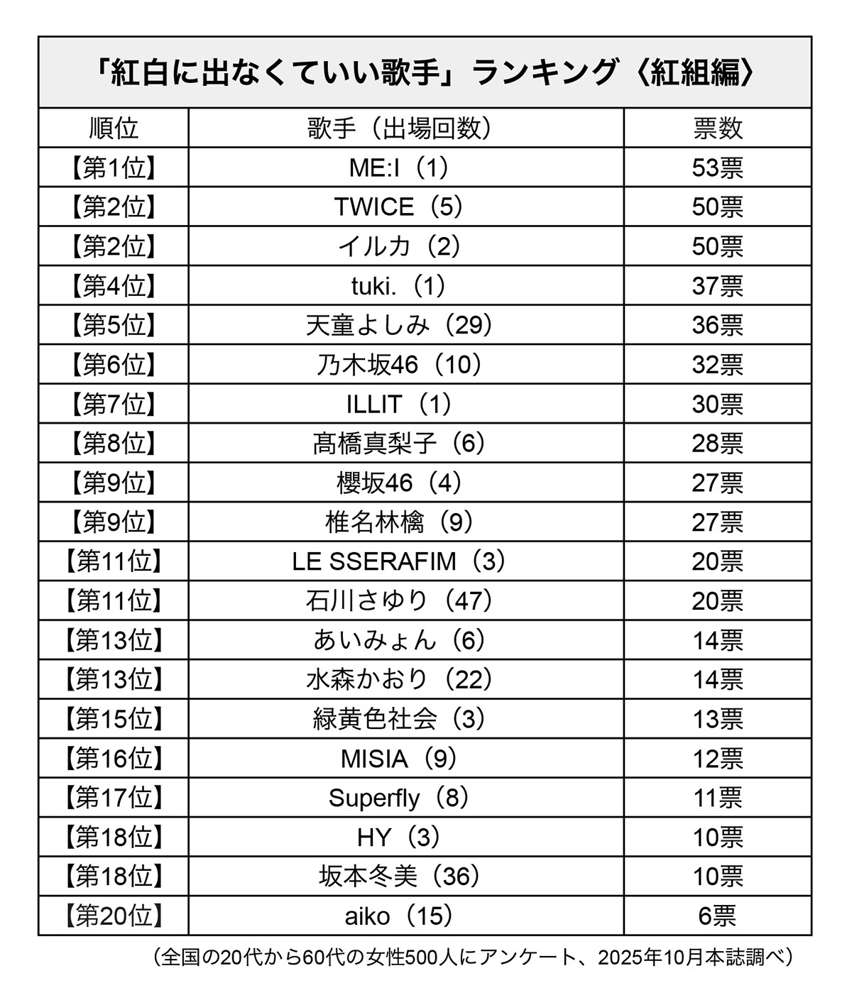 「紅白に出なくていい歌手」ランキング〈白組編〉3位こっちのけんと、1位は「不祥事が多すぎ」と辛辣評価【500人にきいた】