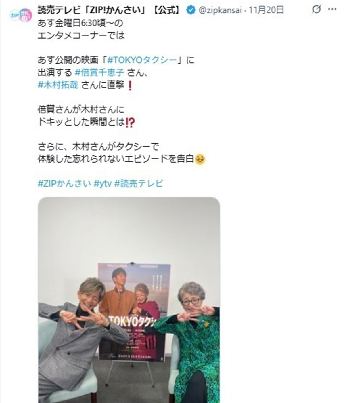 鈴木京香(右)との身長差に疑問が殺到した木村拓哉(グランメゾンプロジェクト公式Xより)