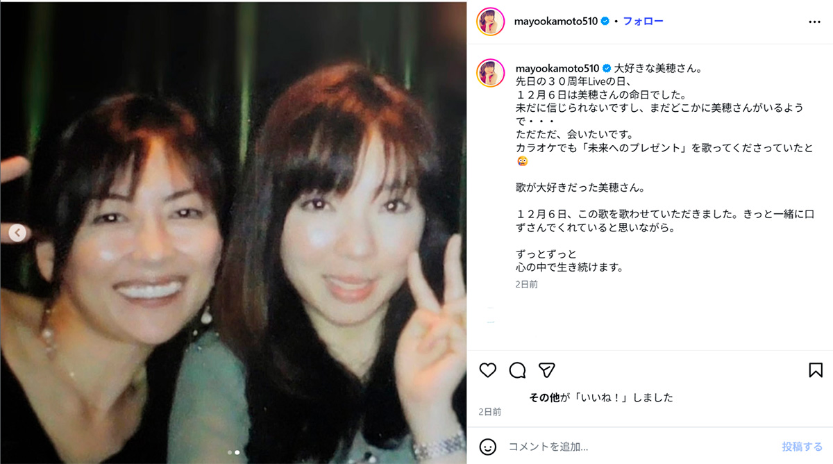 岡本真夜「未だに信じられない」急逝した中山美穂さんとのツーショット投稿しファンから偲ぶ声…過去にはドラマ主題歌を“コラボ”(画像1/4)公開日:2025.12.12 更新日:2025.12.12