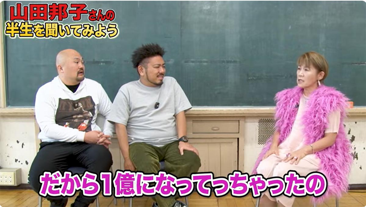 鬼越トマホークに絶頂期の月の収入を明かす山田邦子(「鬼越トマホーク喧嘩チャンネル」に12月13日投稿)