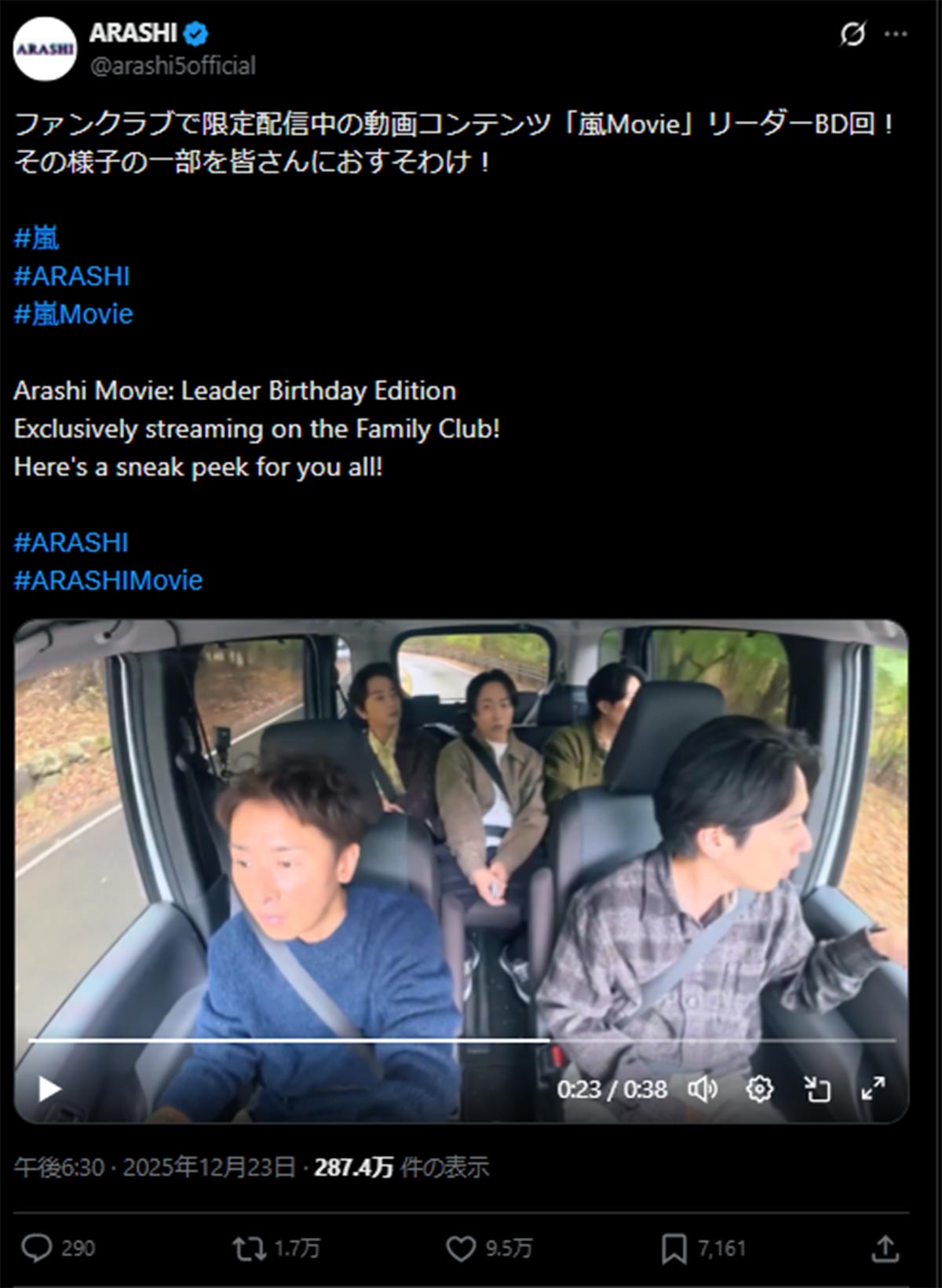 嵐、最新動画で大野智がメンバー乗せてドライブにファン騒然! 活動休止期間に目撃されていた「教習所通い」姿(画像1/13)公開日:2025.12.24 更新日:2025.12.24