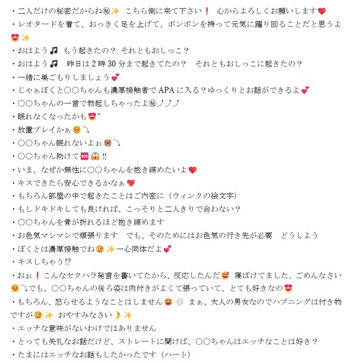 調査委員会が報告した福井県の杉本達治前知事によるセクハラメッセージ。多くの非難の声が寄せられている(写真・調査報告書より)