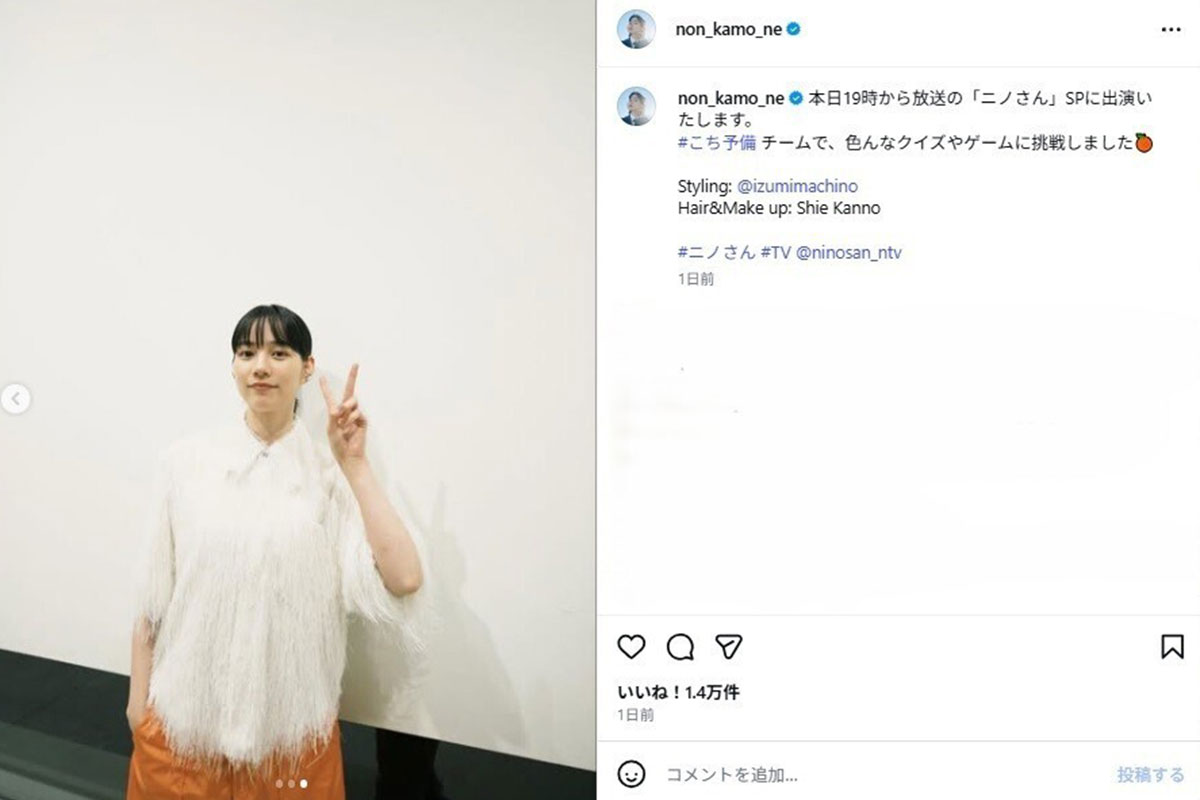 のん、『ニノさん』出演で永野芽郁との「そっくり」説再燃…バラエティにも復活で際立つ “清楚系女優” の躍進ぶり(画像1/11)公開日:2026.01.11 更新日:2026.01.11