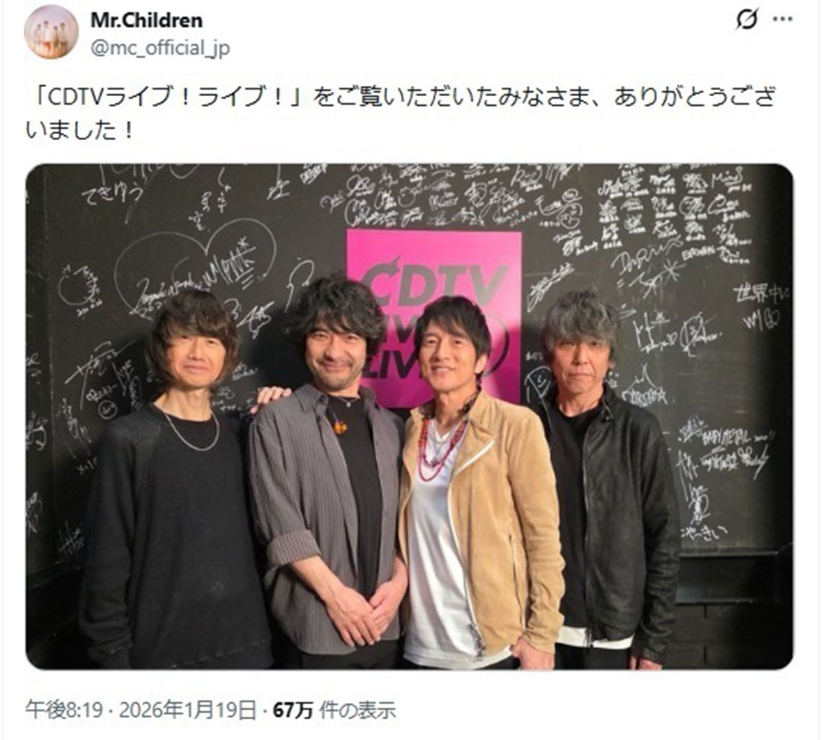 Mr.Children・桜井和寿、『CDTV』出演も“ほっそり激変”に衝撃…テレビ離れ、“新曲減少”期経て漂う再起の気配(画像1/2)公開日:2026.01.20 更新日:2026.01.20