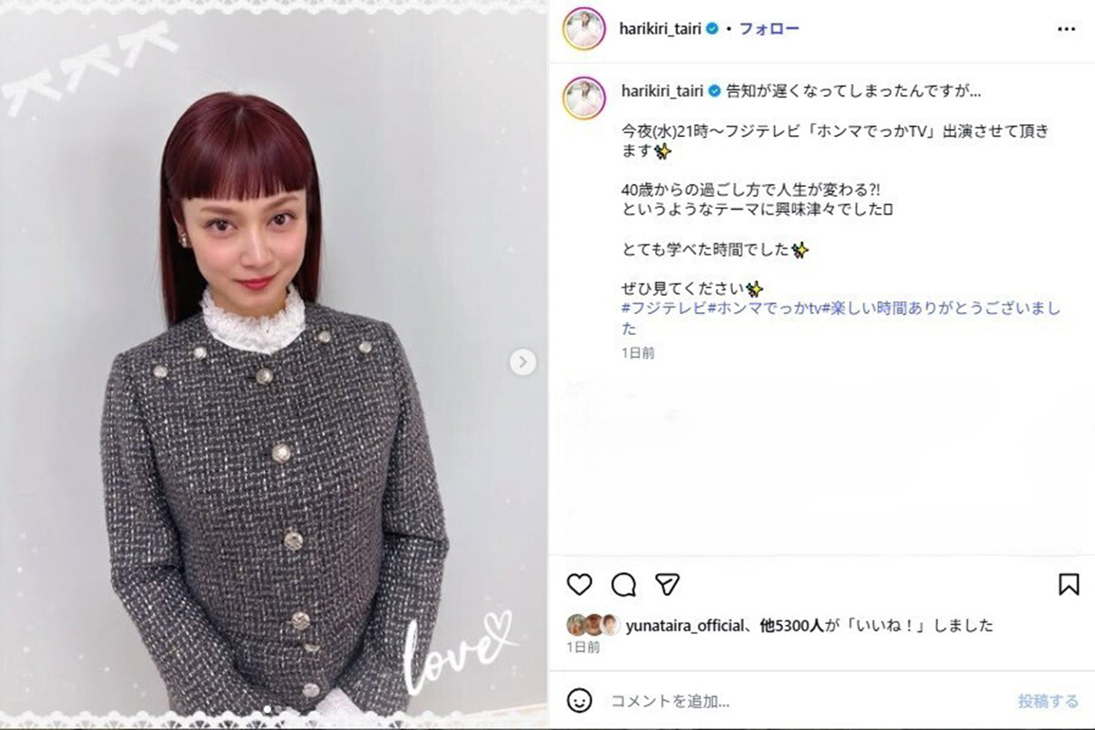 平愛梨、夫・長友佑都から「あごに肉ついてる」指摘明かしてSNS紛糾…過去には「17kgダイエット」決意も(画像1/2)公開日:2026.01.23 更新日:2026.01.23