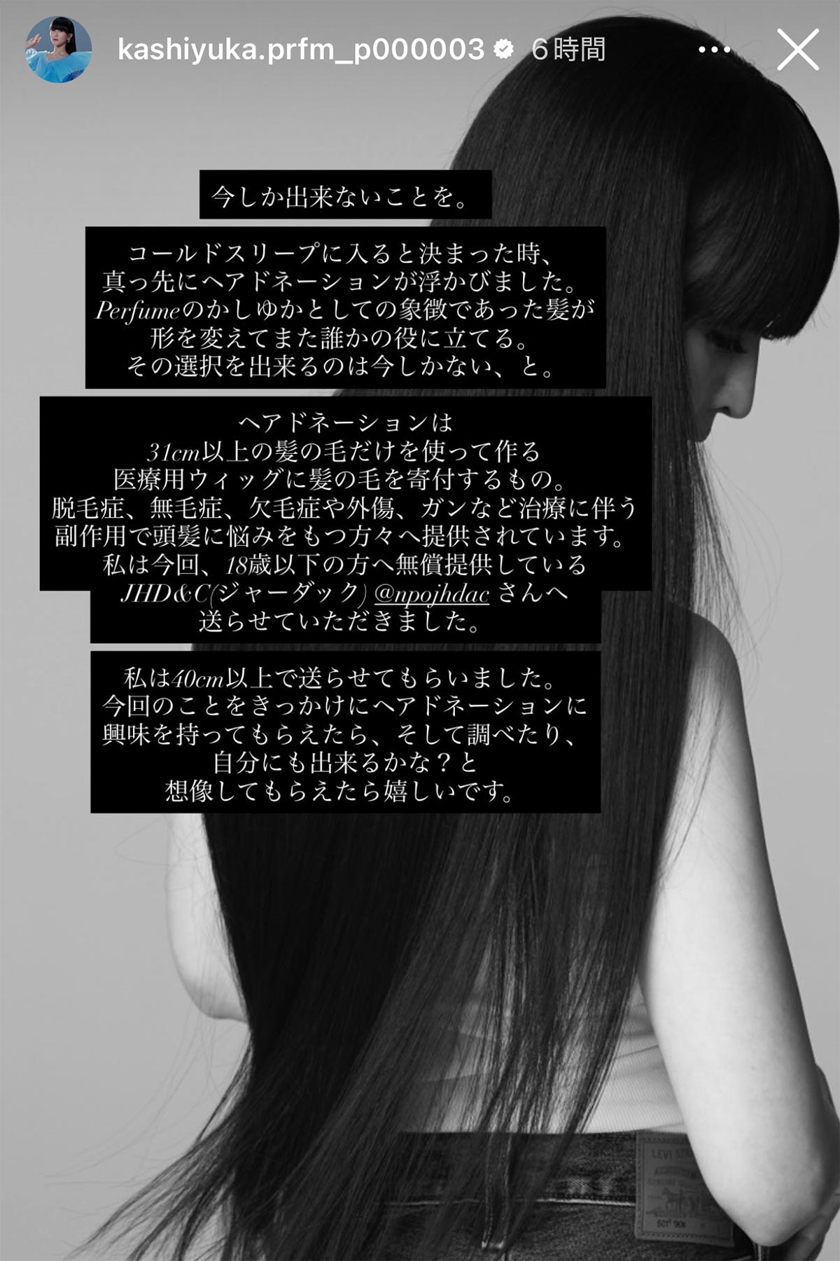 「New me.」と投稿したかしゆか。これまでのトレードマークであるロングヘアを切った(写真・本人Instagramより)