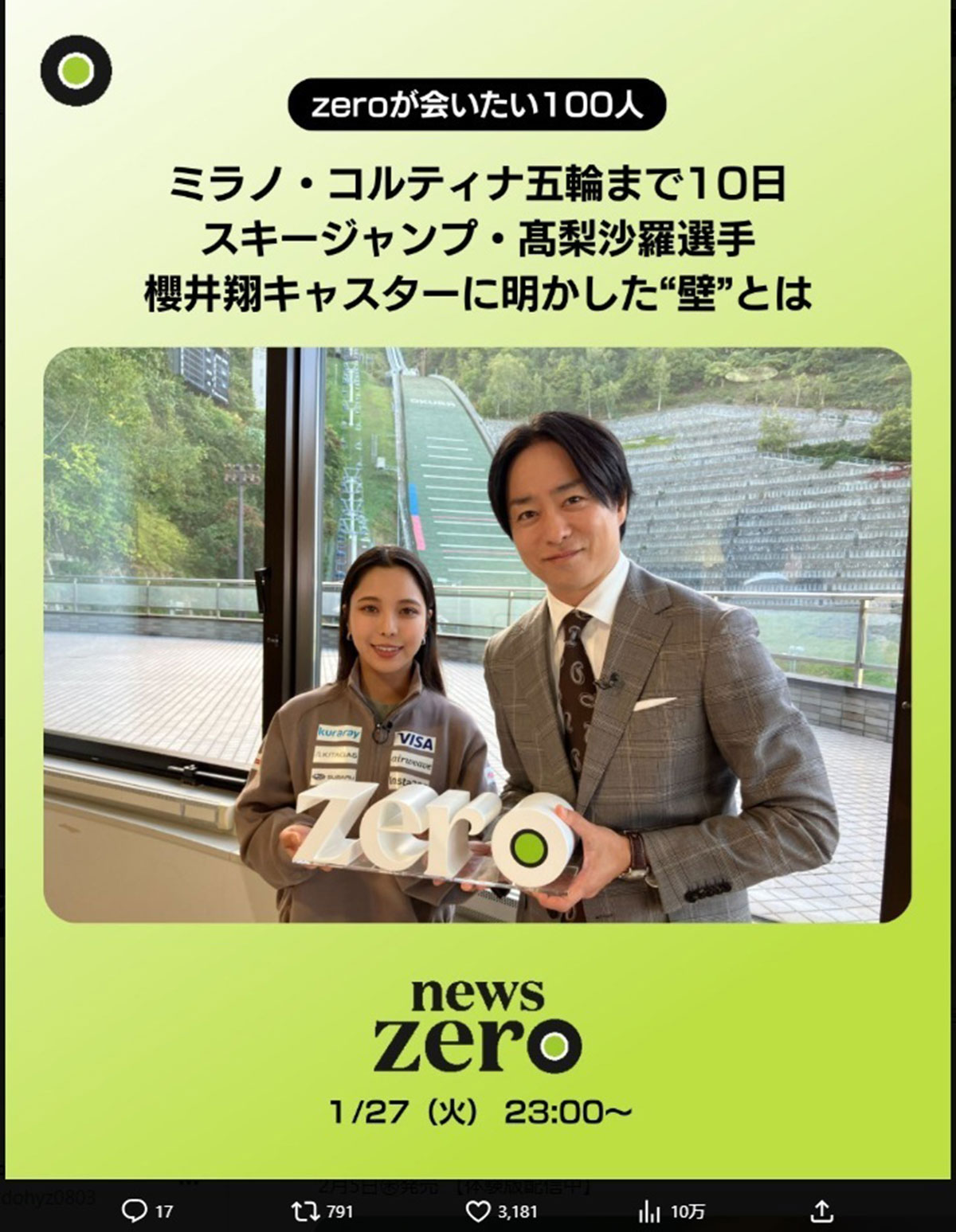 スキージャンプの高梨沙羅と対談した櫻井翔