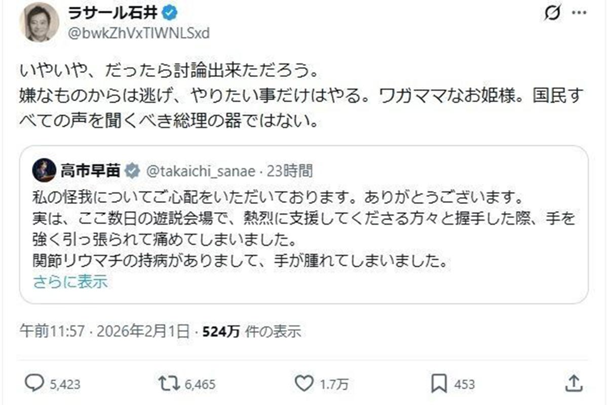 ラサール石井、高市首相を「ワガママなお姫様」痛烈批判に『こち亀』ファン落胆 声優交代発表も根強い「両津勘吉」イメージ(画像1/7)公開日:2026.02.02 更新日:2026.02.02