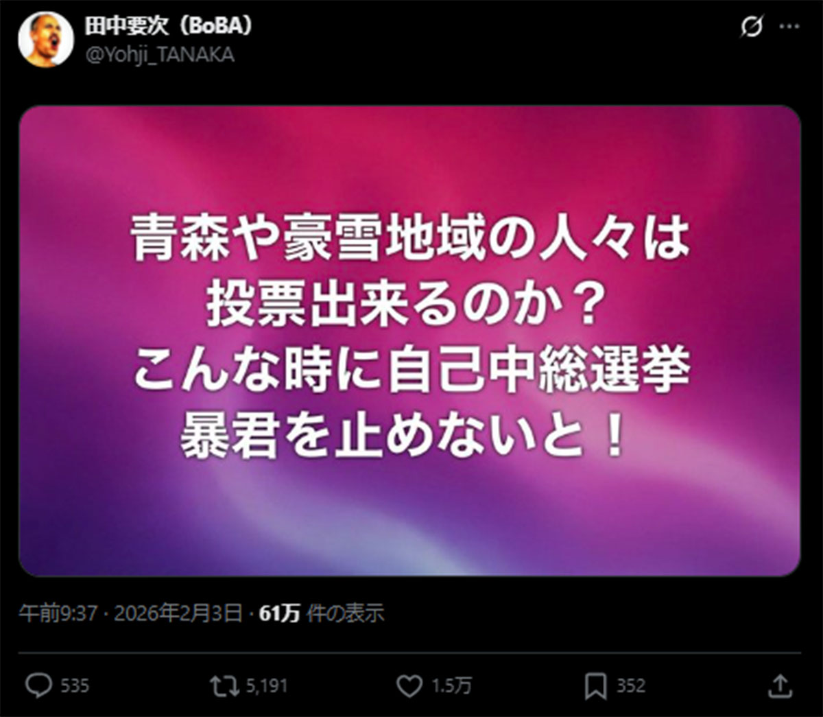 「暴君を止めないと」と“高市選挙”に苦言の田中要次…「憲法改悪を目論んでいる」に続く俳優たちの政治意見表明(画像1/6)公開日:2026.02.05 更新日:2026.02.05
