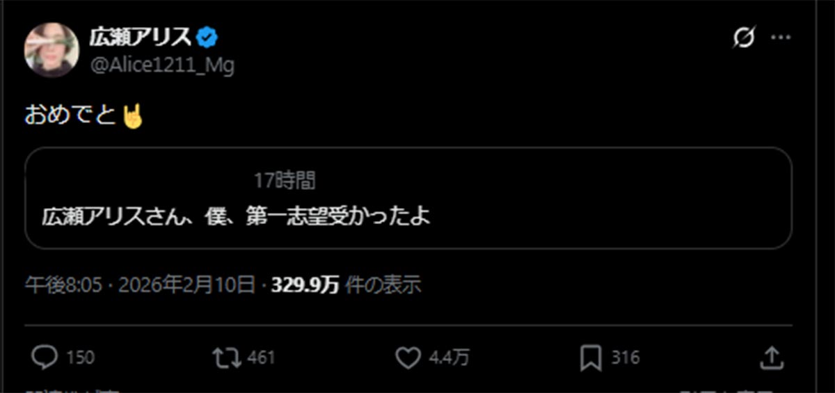 広瀬アリス、出演続くもSNSでの“神対応”が話題…受験合格への「おめでと」リプにファン歓喜「大学受かるより嬉しい」(画像1/29)公開日:2026.02.11 更新日:2026.02.11