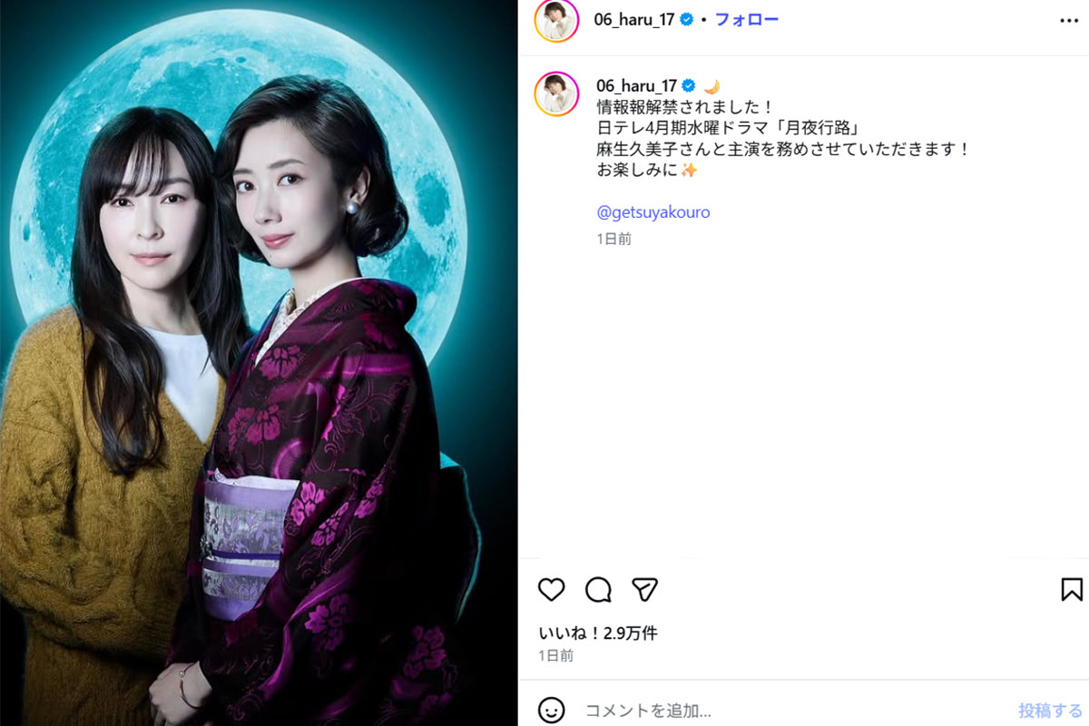 『わたしのお嫁くん』(フジテレビ系)の公式Instagram(放送当時)より。現在は、同じく波瑠が主演を務めた、2025年1月期ドラマ『アイシー~瞬間記憶捜査・柊班~』の公式アカウントとして運用されている。波瑠と高杉真宙との密着したショットが、当時ファンの間で話題を呼んだ