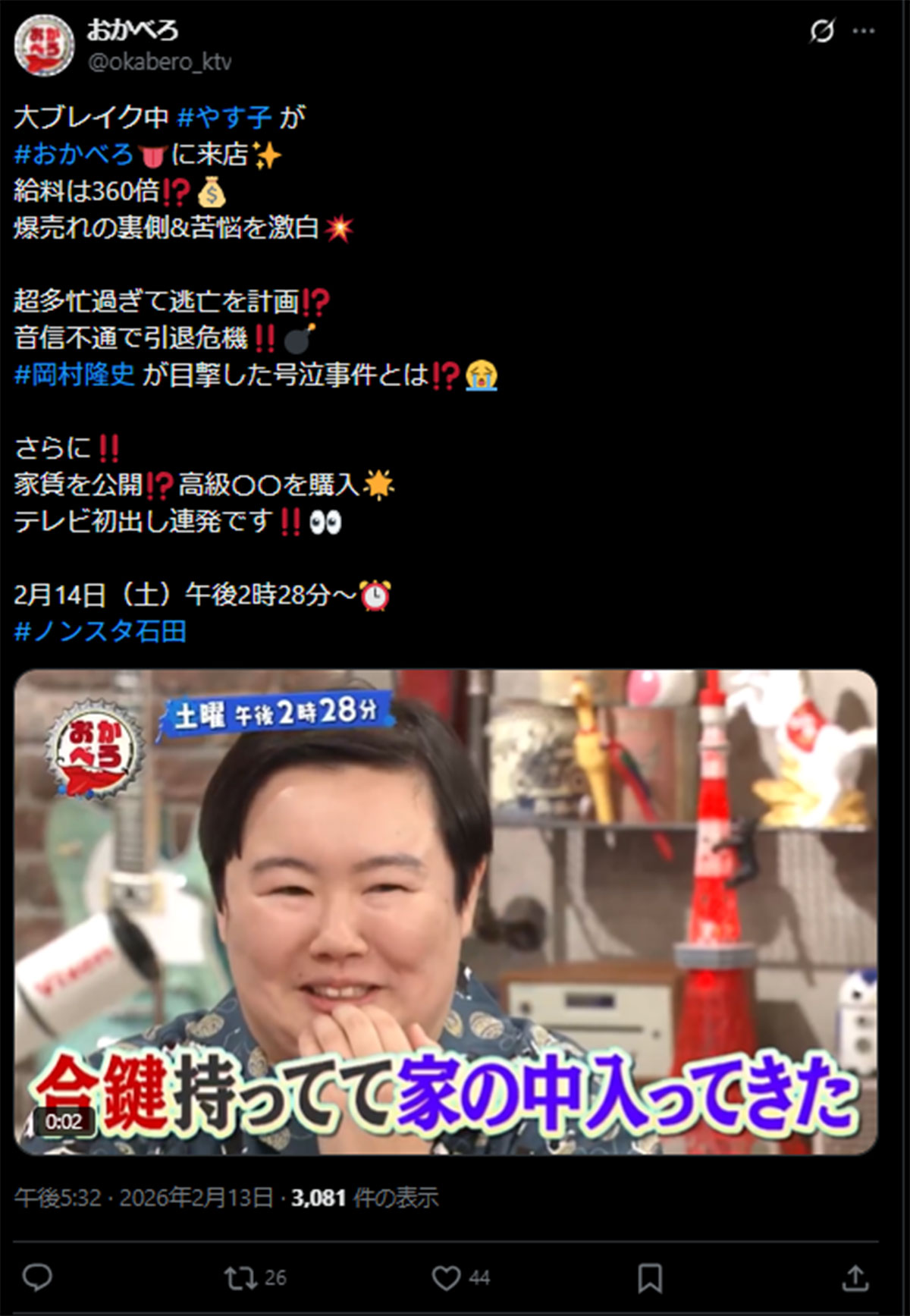 芸能 | 2026.02.14