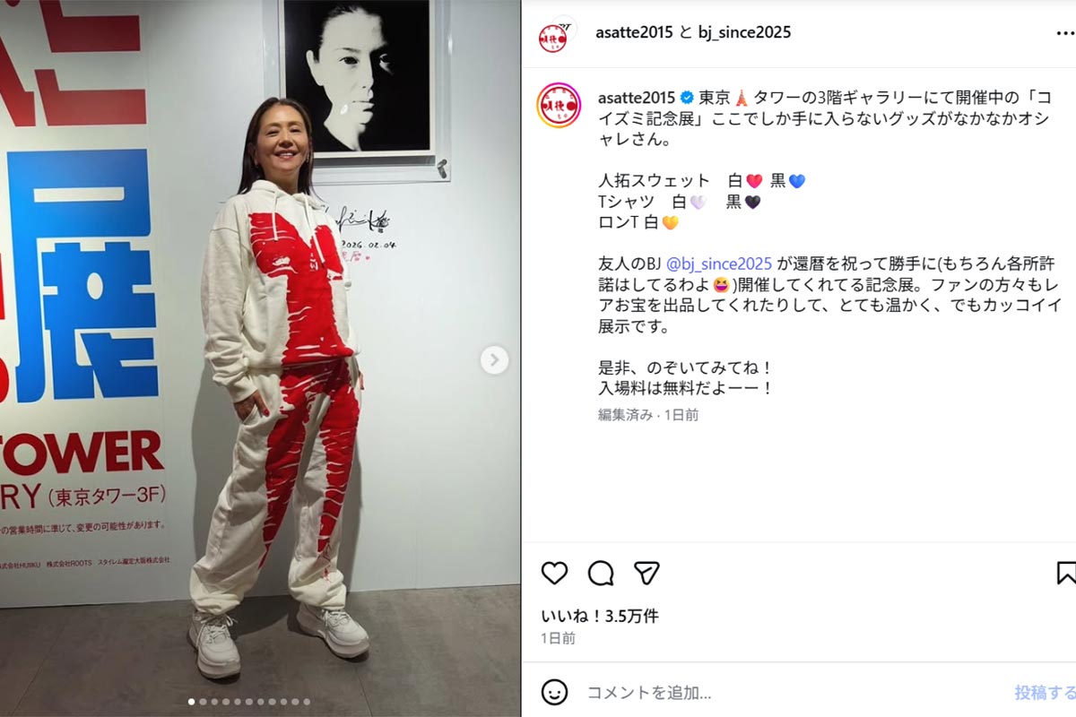 小泉今日子、20歳のころの “人拓” スウェット化にファン歓喜…開催中の記念展は宮川大輔も鑑賞して「やばいー!」(画像1/8)公開日:2026.02.18 更新日:2026.02.18