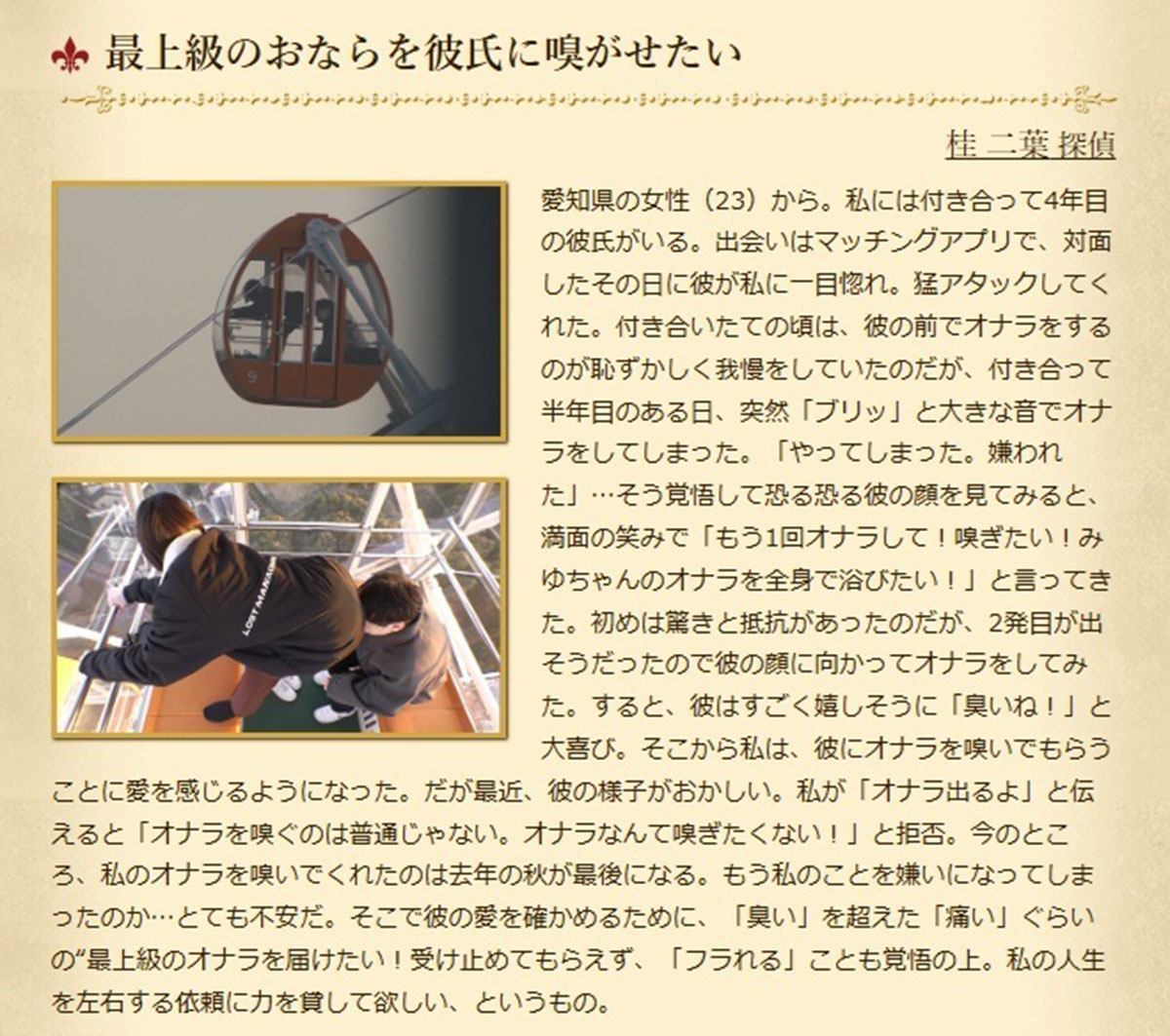 『探偵!ナイトスクープ』“最上級のおならを彼氏に嗅がせたい”攻めすぎ依頼に視聴者唖然「地上波でやって大丈夫か?」(画像1/4)公開日:2026.02.27 更新日:2026.02.27