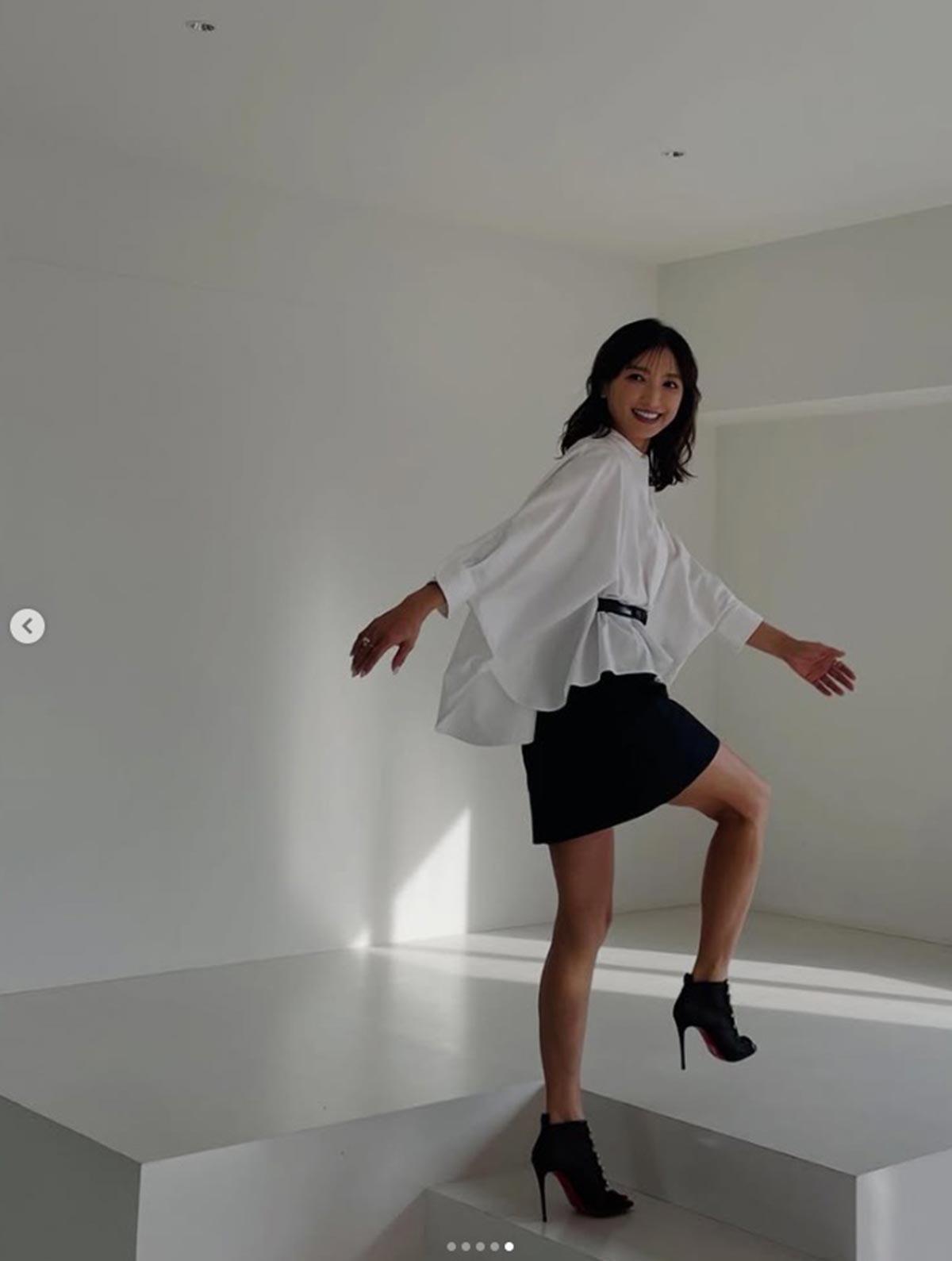 撮影風景を投稿した望月理恵アナ。美脚にファンは釘づけだ(写真・本人Instagramより)