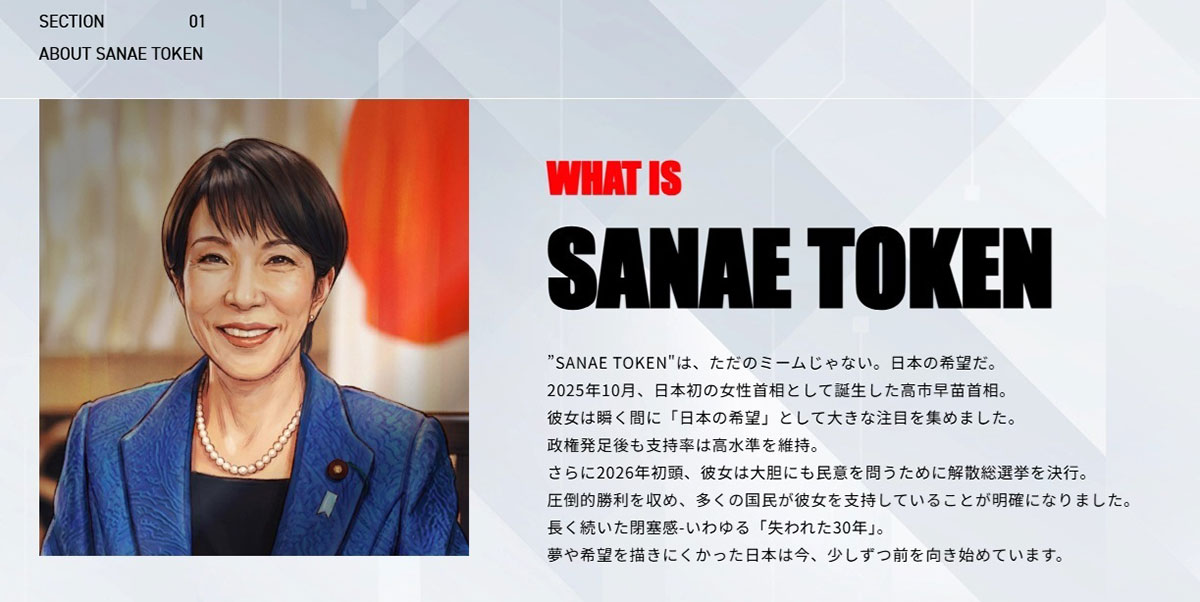 高市首相のイラストが描かれたサナエトークン。首相からは「私は全く存じ上げません」と注意された