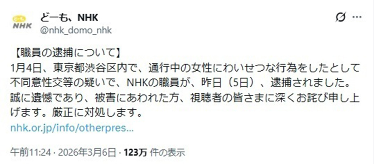 「危ないものを持っている」NHKチーフD、白昼の性的暴行で逮捕…事件後も2カ月“五輪取材”に勤しんだ厚顔無恥