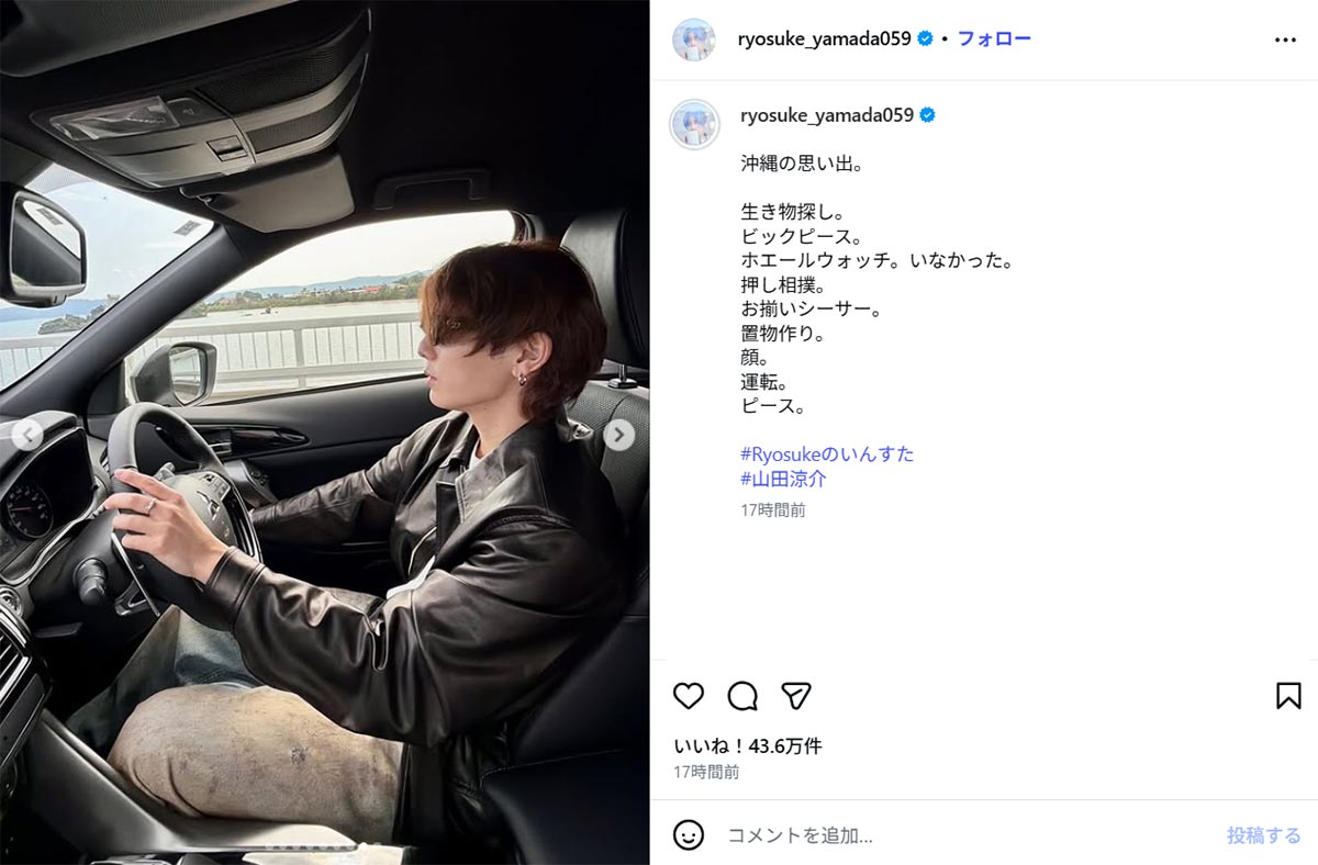 山田涼介、“助手席目線”の運転ショットにファン歓喜…姪っ子との沖縄旅行での“おじ活”公開(画像1/12)公開日:2026.03.12 更新日:2026.03.12