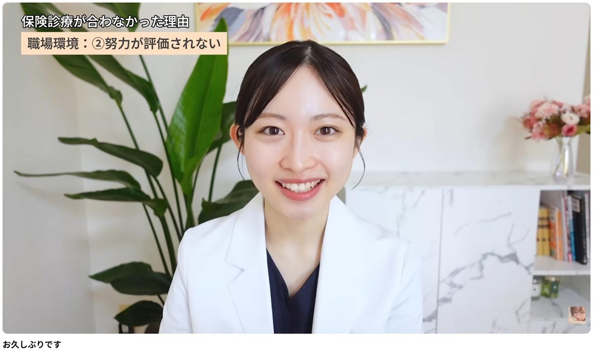 保険診療の苦悩を明かした美人YouTuber(写真・本人のYouTubeチャンネルより)