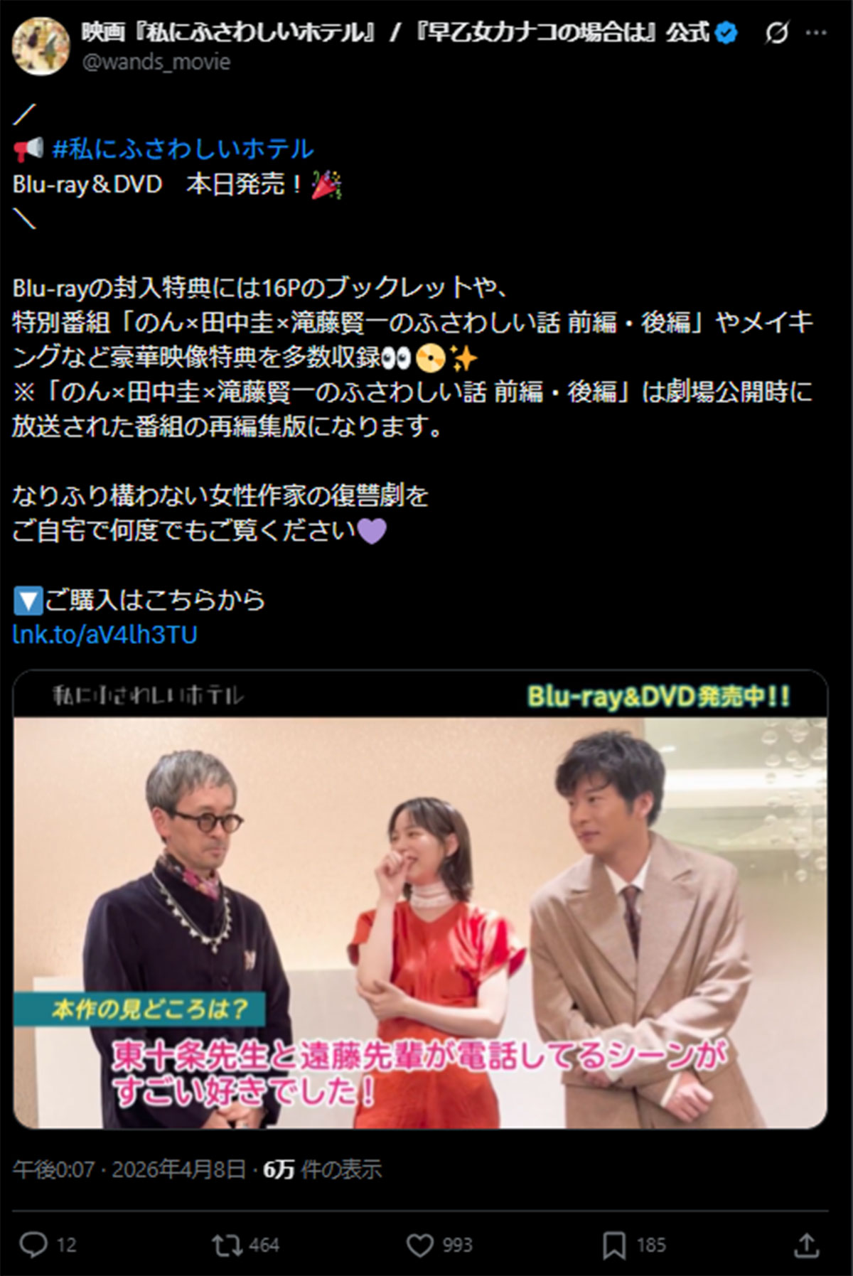 田中圭、映画公開から1年半後の「DVD発売告知」に漂う違和感…PR動画の衣装は“舞台挨拶当日”のまま(画像1/33)公開日:2026.04.09 更新日:2026.04.09