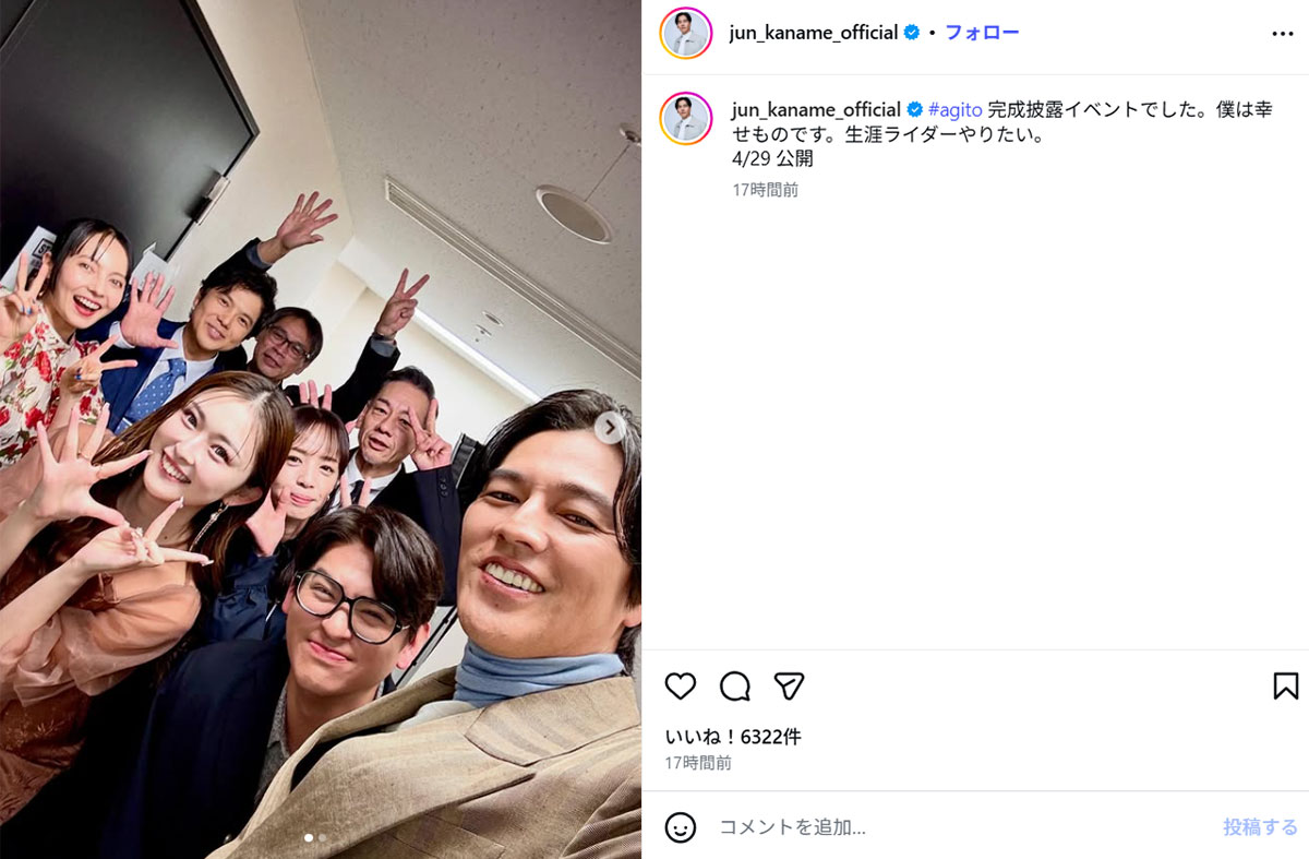 映画『アギト−超能力戦争−』の完成披露イベントを報告した要潤(要のInstagram《@jun_kaname_official》に4月9日投稿)