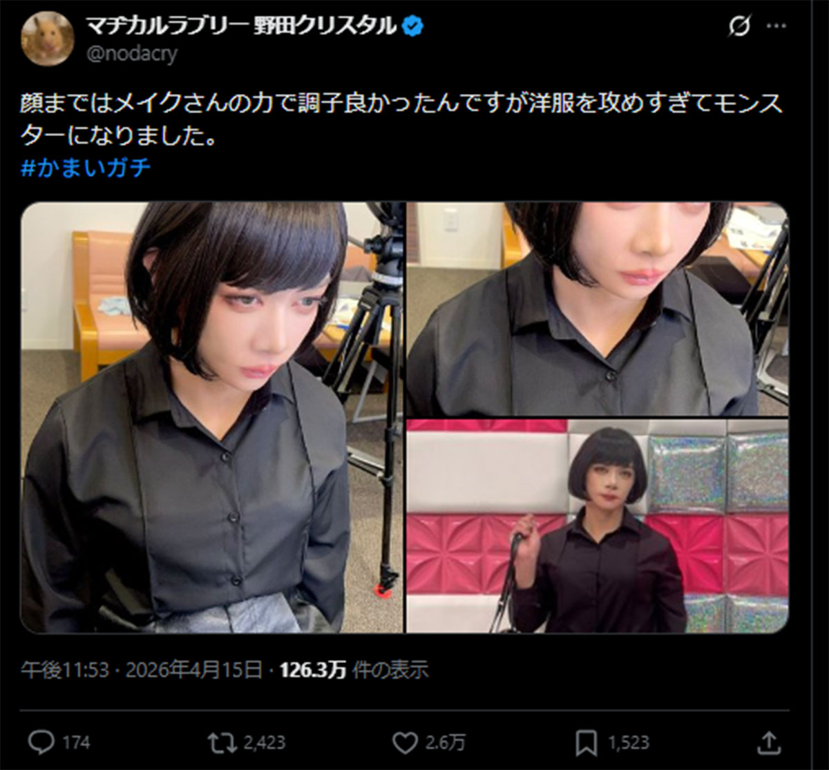 野田クリスタル、“池田エライザ意識”の女装姿に「普通に可愛い」ファン称賛…実力派女優に“激似”指摘する声も(画像1/4)公開日:2026.04.16 更新日:2026.04.16