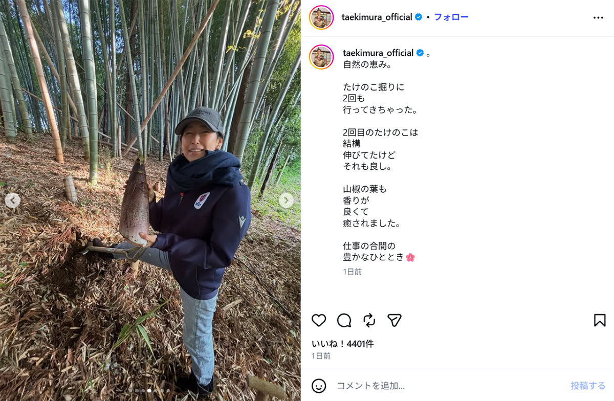木村多江、「仕事の合間」に巨大タケノコ堀り姿披露しファン称賛…過去にも垣間見せていた“豊富な経験”(画像1/5)公開日:2026.04.28 更新日:2026.04.28